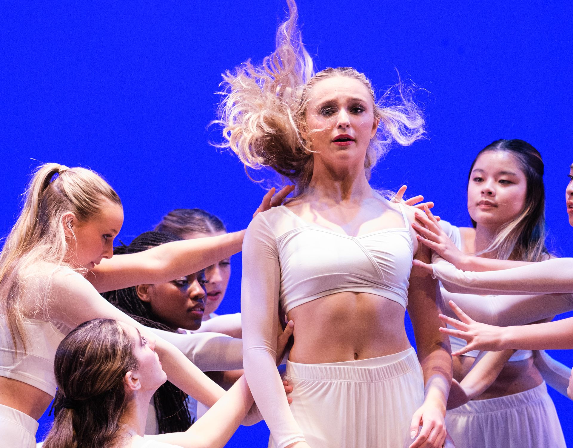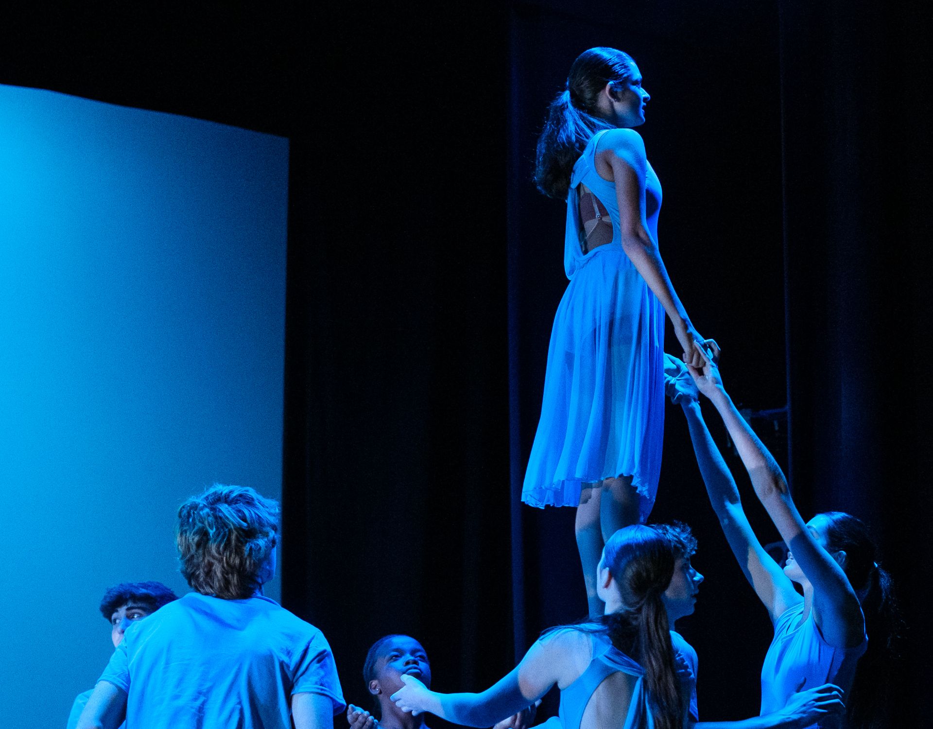We practice in a spacious, barre- and mirror-lined studio inside our Knight Fine Arts Center. Our performances take place in our 400-seat fully equipped theater, complete with lighting and sound.